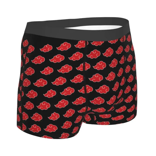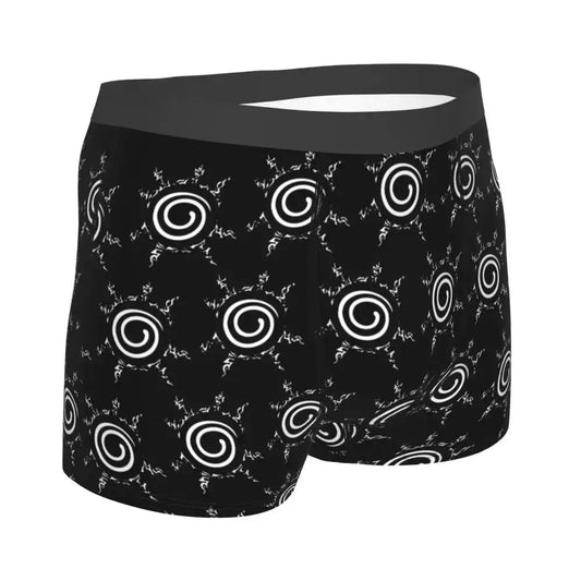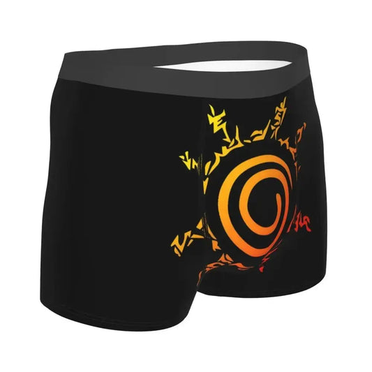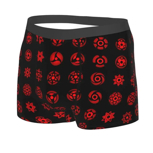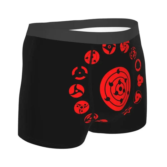 Minimalist Otaku: Black boxer briefs with subtle red Uchiha fan mark.