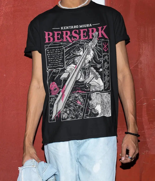 Wearing a Berserk shirt isn’t cosplay — it’s allegiance. A statement that you’ve seen darkness and didn’t flinch. That you value honor in the face of despair. That you walk forward even when fate tries to tear you apart. That in a world of apostles, demons, and shattered dreams, you choose the sword — not the void.