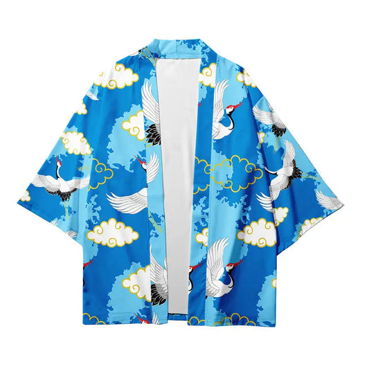 | Patterned Blue Haori | Floral, crane, wave, or fan prints 🌊 | Layered aesthetics, seasonal fashion |