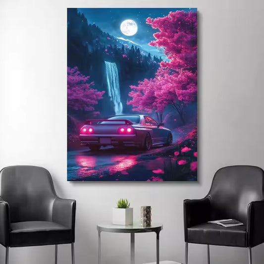 Cherry blossom posters often include complementary imagery such as Mount Fuji silhouettes, koi fish ponds, paper lanterns, moonlit skies, or minimalist calligraphy. These elements deepen cultural richness and visual storytelling.
