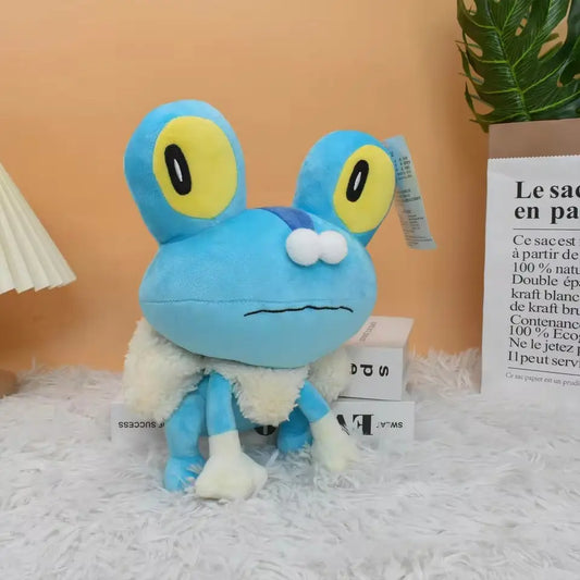 Leaping straight from the Kalos region and into your heart is the one and only Froakie plush! This adorable bubble frog starter is a must-have for Pokémon fans who love cute designs, ninja potential, and water-type companions with serious personality. With its big yellow eyes, soft blue body, and fluffy white bubble collar, Froakie looks ready to leap into action—or snuggle in for a cozy nap.