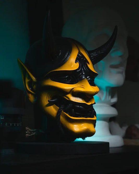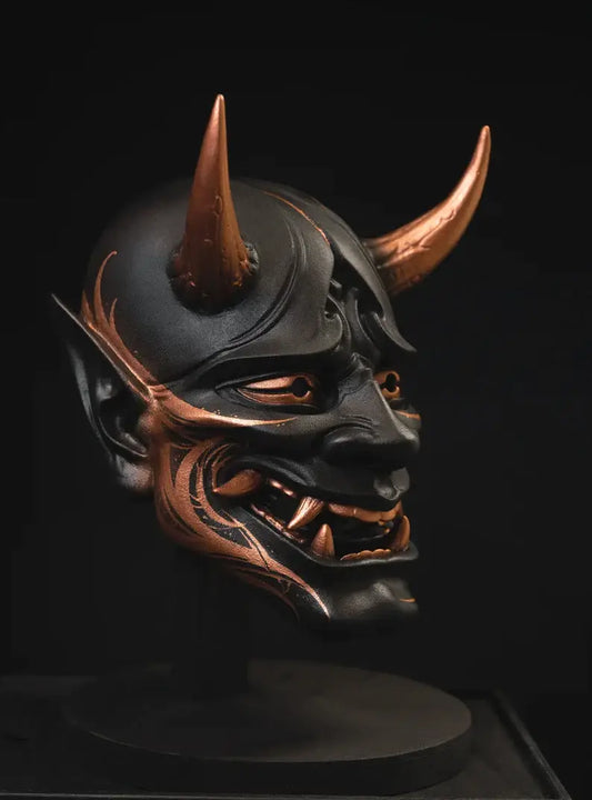 The Hannya mask traces its origins to Noh theatre, a refined Japanese performance art dating back to the 14th century. Designed to represent the soul of a woman scorned and transformed by obsession, the mask embodies the thin line between humanity and monstrosity. With angles that change expression depending on the viewing position (from sorrow when looked at head-on to rage from below), the Hannya is both art and illusion.