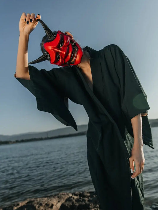 For fashion, a Hannya mask can be paired with everything from modern streetwear to kimono-inspired outerwear. Try layering fabrics and textures like velvet, silk, or armor-like leather.