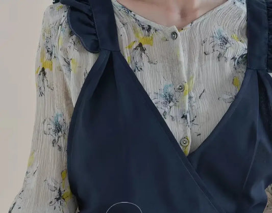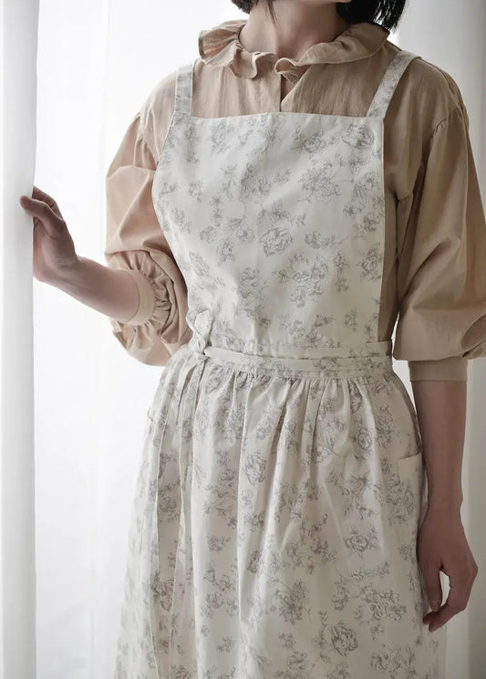 | Sakura Cross-Back Apron | Subtle blossom prints, feminine and soft draping |