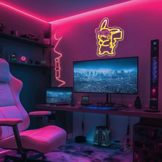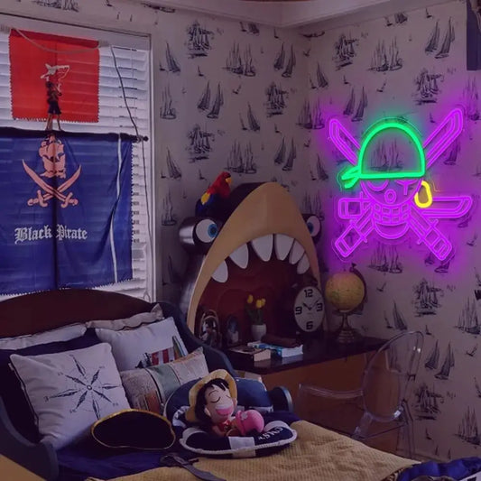 These additions frame your neon sign within a story—making your room feel like a cinematic still or a scene from a manga.