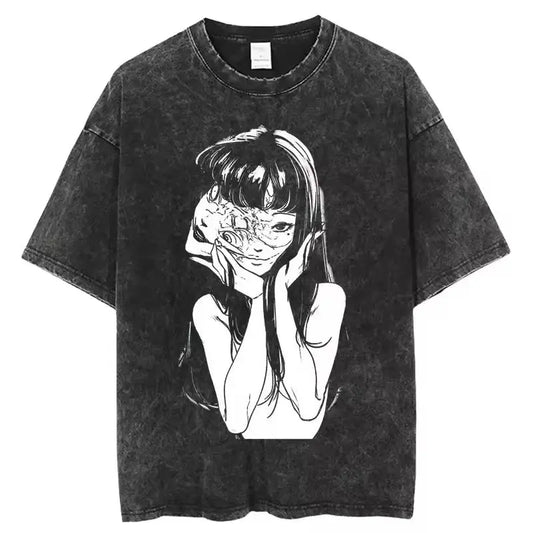 From the timeless terror of "Uzumaki" to the haunting elegance of "Tomie," Junji Ito shirts deliver a dark aesthetic fused with powerful storytelling. Each piece features unsettling artwork, eerie motifs, and surreal horror scenes that are both iconic and fashionable.