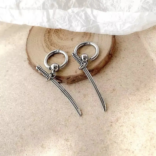 Pair silver katana earrings with an oversized black hoodie and sneakers.