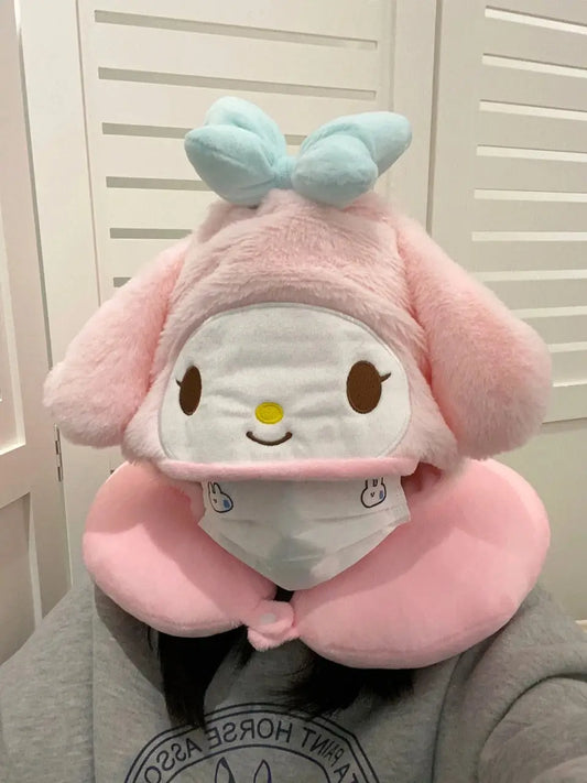 Bring a My Melody neck pillow for flights, road trips, or conventions.