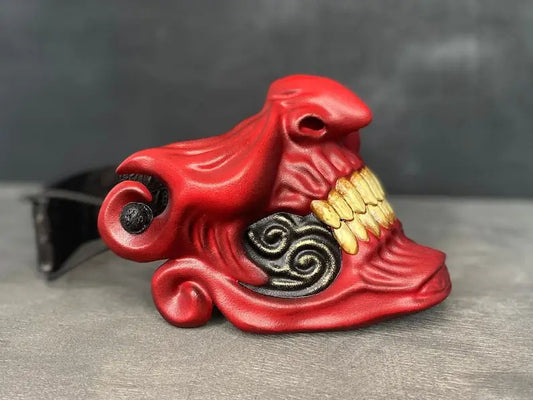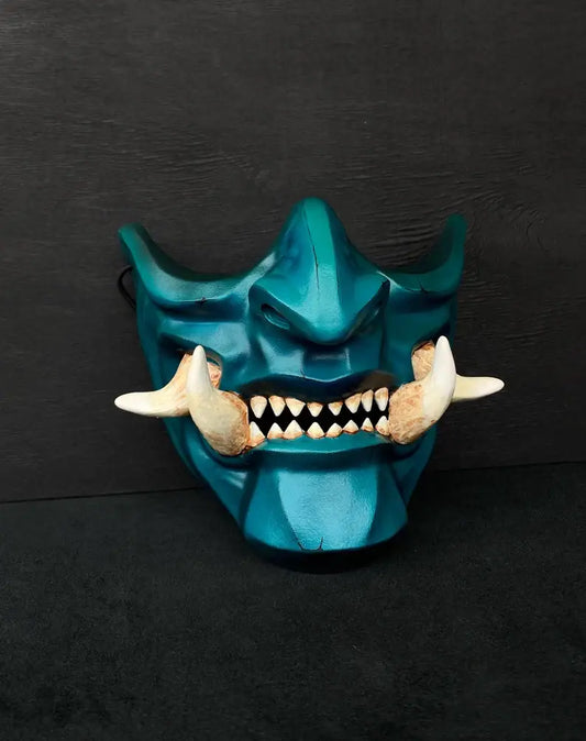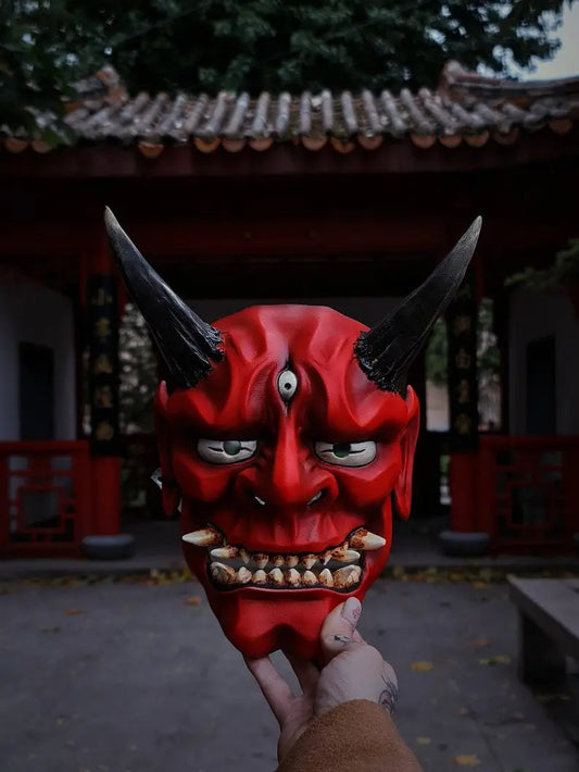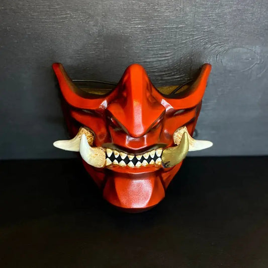 From anime and samurai lore to kabuki theatre and modern urban fashion, the Oni mask blurs the line between folklore and fierce fashion. With its snarling fangs, curved horns, and hypnotic expression, it's more than a costume piece — it's a challenge to your inner shadow. It embodies power unbound, rage redirected, and a kind of ancestral strength that transcends time. Throughout Japan's centuries-old history, oni masks were used to frighten, empower, and protect. Now, they serve as artistic relics of spiritual strength and personal transformation.