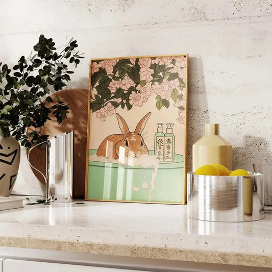 Bunny Bath Kawaii Vintage Poster