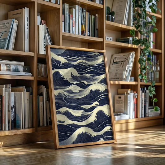 Navy Blue Japanese Waves Poster