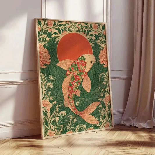 Emerald Crimson Koi Fish Poster