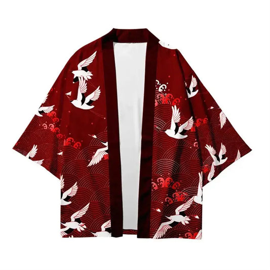 | Streetwear Red Haori | Bold prints, open sleeves, light cotton 🌀 | Urban fashion, anime-inspired fits |