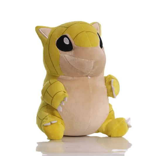 The plush design stays true to Sandshrewâs classic lookâyellow, segmented hide resembling bricks, a rounded snout, and those gentle, bright eyes. Itâs built to be sturdy and round, just like Sandshrewâs in-game ability to curl up for protection. The stitching mimics its armored scales while the material stays plush and soft, making it a perfect pick for cuddles or display.