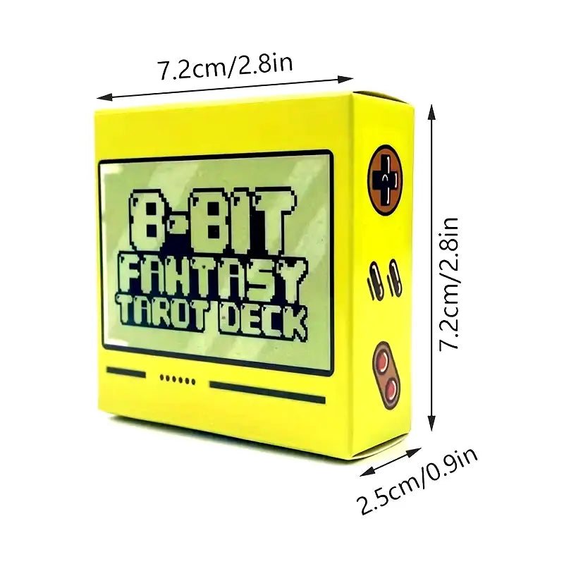 Each card in this deck measures a standard tarot size, ensuring ease of handling and shuffling. Made from high-quality materials, these cards are designed for long-lasting use. Enjoy the fun of tarot with a retro twist—grab your 8-Bit Fantasy Tarot Deck today!