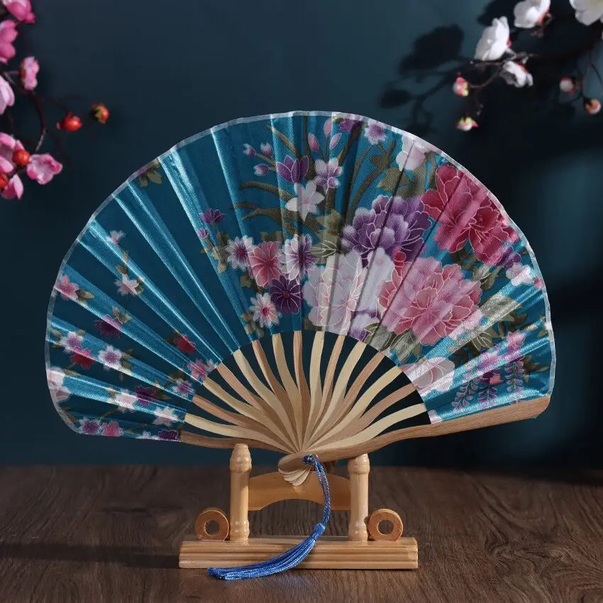 Measuring about 10 inches in diameter, this lightweight fan is crafted from high-quality bamboo and silk, ensuring both durability and elegance. Its stunning azure and floral patterns make it a standout piece for any occasion. Explore the charm of Japanese culture and add this exquisite fan to your collection today!