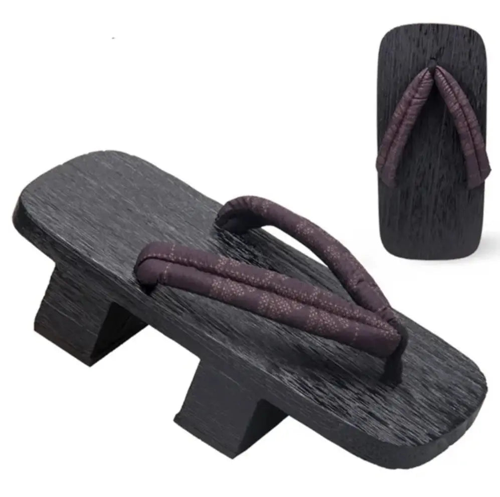 These Burgundy Black Geta Sandals are designed for comfort and durability. With a sturdy wooden base and soft cotton straps, they are available in sizes 40 to 46, ensuring a great fit. Enjoy the blend of style and tradition—order yours today to elevate your wardrobe!