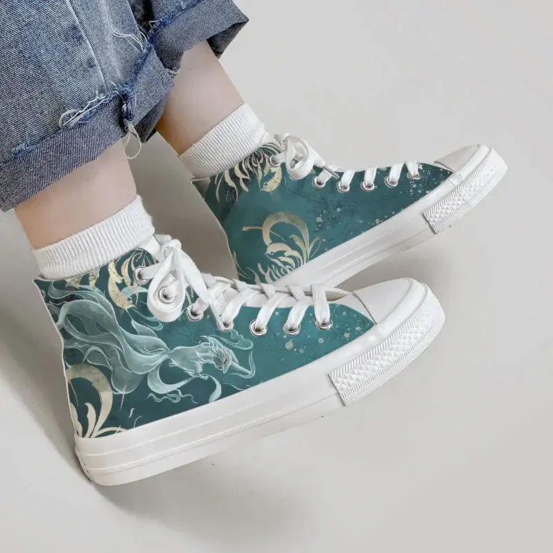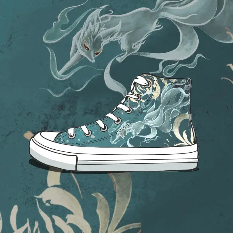 Canvas Kitsune Ghost Anime Shoes