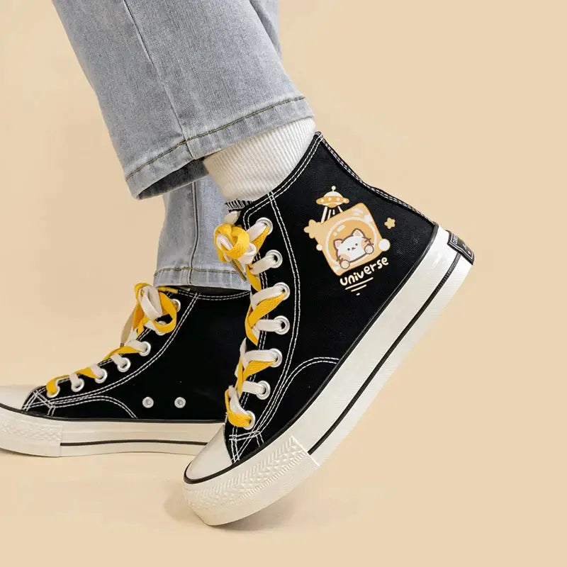 These high-top anime shoes combine style and practicality, crafted from a blend of cotton and microfiber for maximum comfort. With sizes ranging from 36 to 44, finding your perfect fit is easy. Don't miss out on adding this unique piece to your wardrobe—grab a pair today!