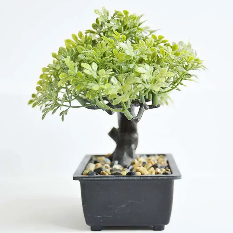 This bonsai tree is made with high-quality plastic and iron wire, ensuring durability and a lifelike appearance. Its compact size fits perfectly on desks or shelves. Enjoy its beauty without any upkeep. Order now and transform your space effortlessly!