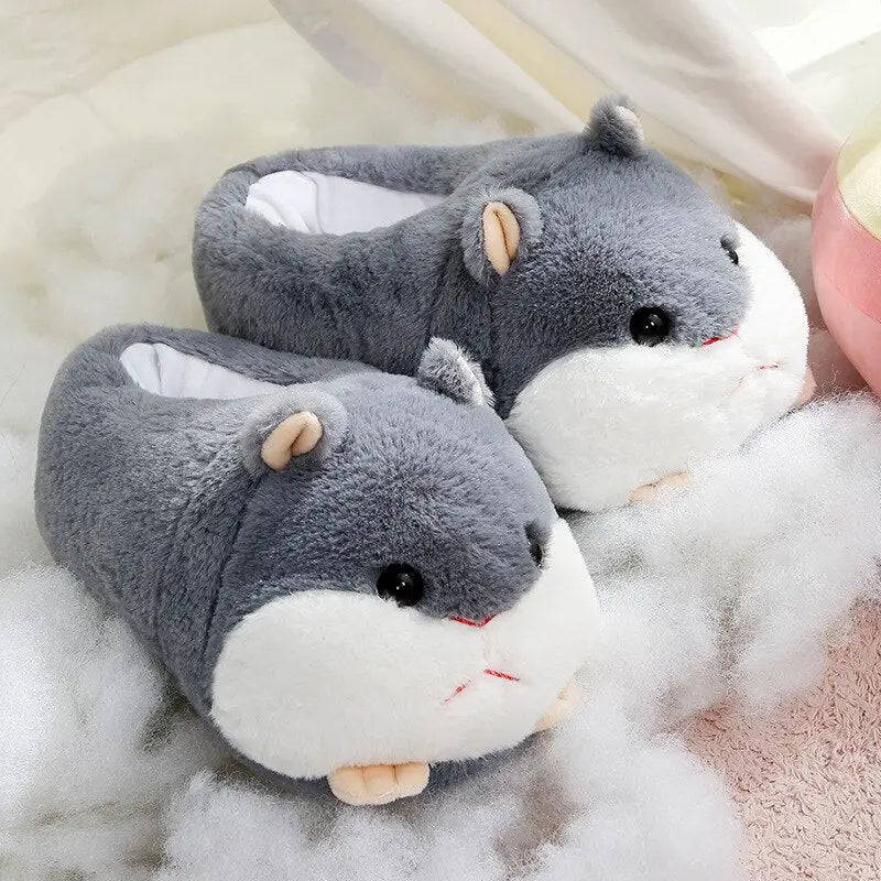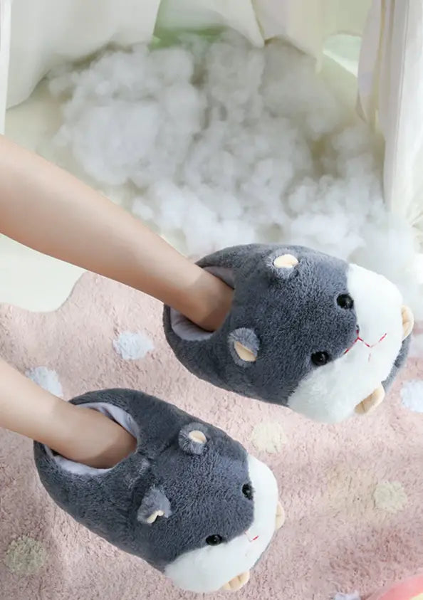 Comfy Dark Gray Hamster Kawaii Slippers