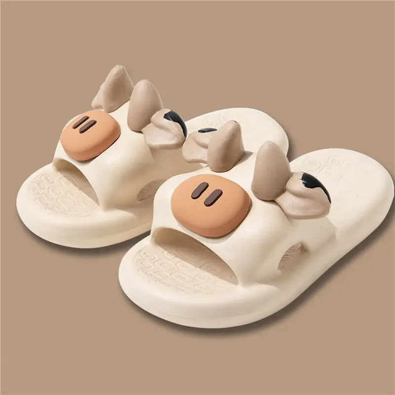Comfy Khaki Cow Shaped Kawaii Slippers