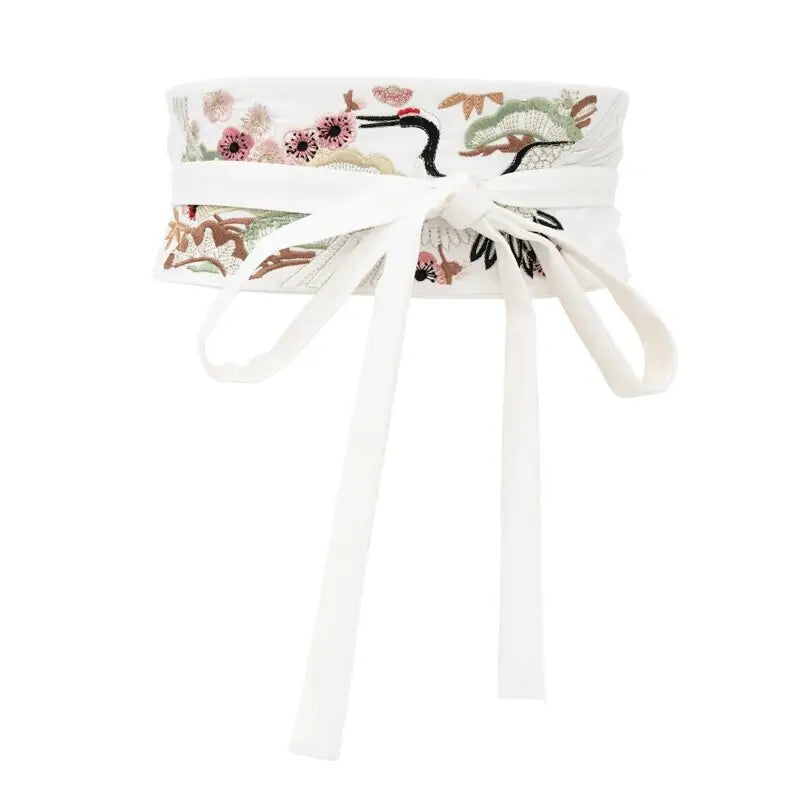 The Crane Embroidery White Obi is more than just a fashion accessory; it connects you to Japan's rich cultural heritage. The crane symbolizes longevity and good fortune, making this Obi a meaningful addition to your wardrobe. Enhance your style with a piece steeped in tradition.