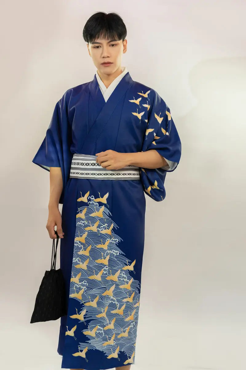 The Cranes Traditional Blue Men Kimono is more than just clothing; it represents a rich cultural legacy. The crane, a symbol of peace and longevity in Japan, often features in traditional celebrations. Wearing this kimono connects you to centuries of Japanese artistry and craftsmanship, allowing you to embrace history in style.