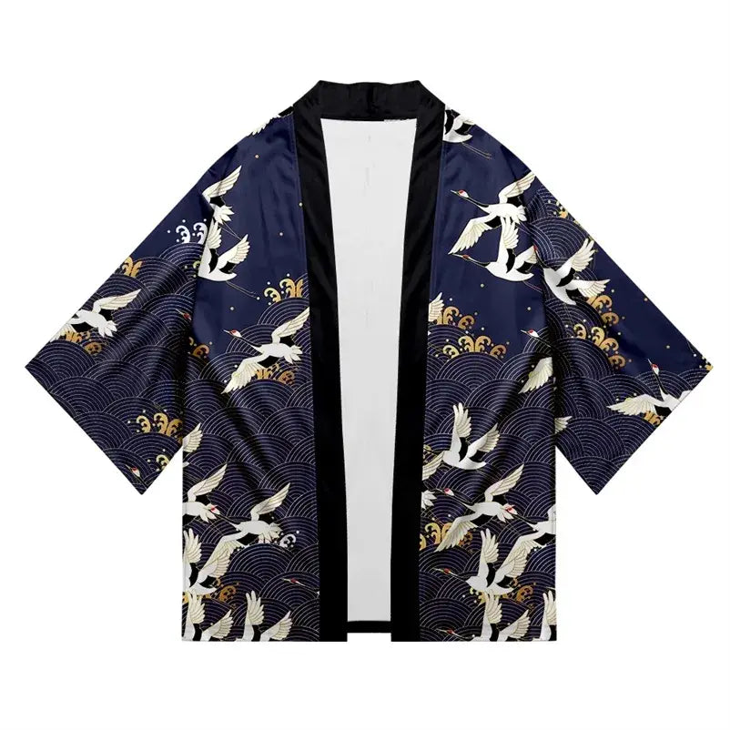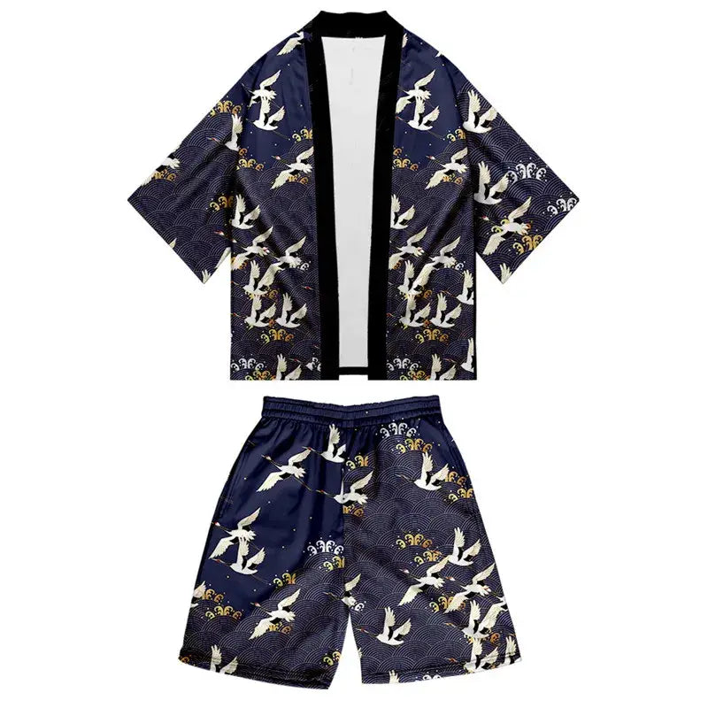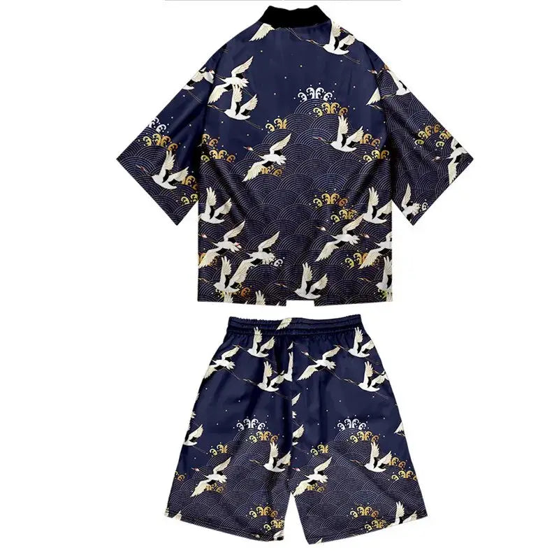 The Cranes Waves Haori Shorts Set merges tradition with modern comfort. The crane symbolizes longevity and good fortune in Japanese culture, while the waves represent strength. This set allows wearers to embrace Japan's rich heritage in everyday fashion, bringing elegance to casual attire.