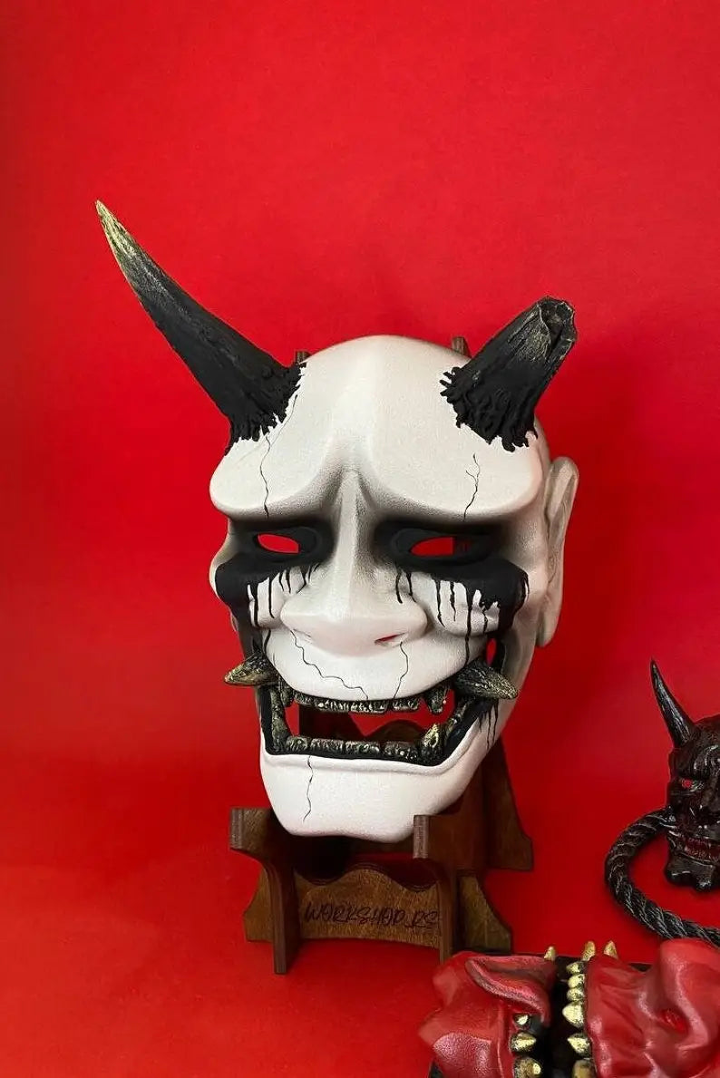 Crafted from high-quality PUR resin, this Crying White Hannya Demon Mask is designed for comfort with genuine leather straps. Lightweight and adjustable, it fits most adults easily. Perfect for cosplay, Halloween, or as a striking decorative piece. Order now to enhance your collection!
