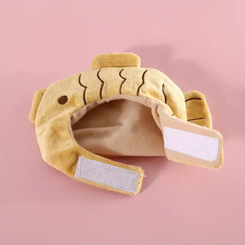 The Taiyaki Cat Hat draws inspiration from the beloved Japanese snack, Taiyaki, which is a fish-shaped cake filled with sweet red bean paste. This charming hat not only adds a playful touch to your cat’s look but also celebrates Japanese culture. By dressing your furry friend in this hat, you embrace the joy of traditional Japanese festivals and vibrant culinary arts.