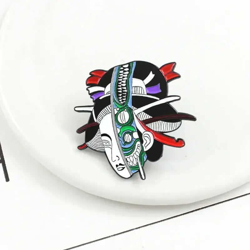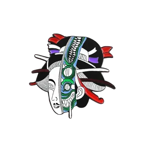 The Cyborgeisha Enamel Pin merges the elegance of Geisha culture with elements of cyberpunk aesthetics. This unique combination reflects Japan's rich heritage while embracing modern trends, offering a piece that resonates with both tradition and innovation.