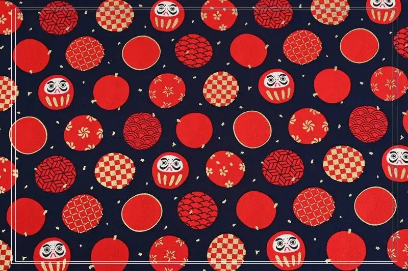The Daruma doll symbolizes perseverance and good luck in Japanese culture. These dolls are often gifted to inspire others to achieve their goals. The Navy Furoshiki, adorned with vibrant red Daruma and intricate patterns, not only serves a practical purpose but also enriches your daily life with cultural significance.