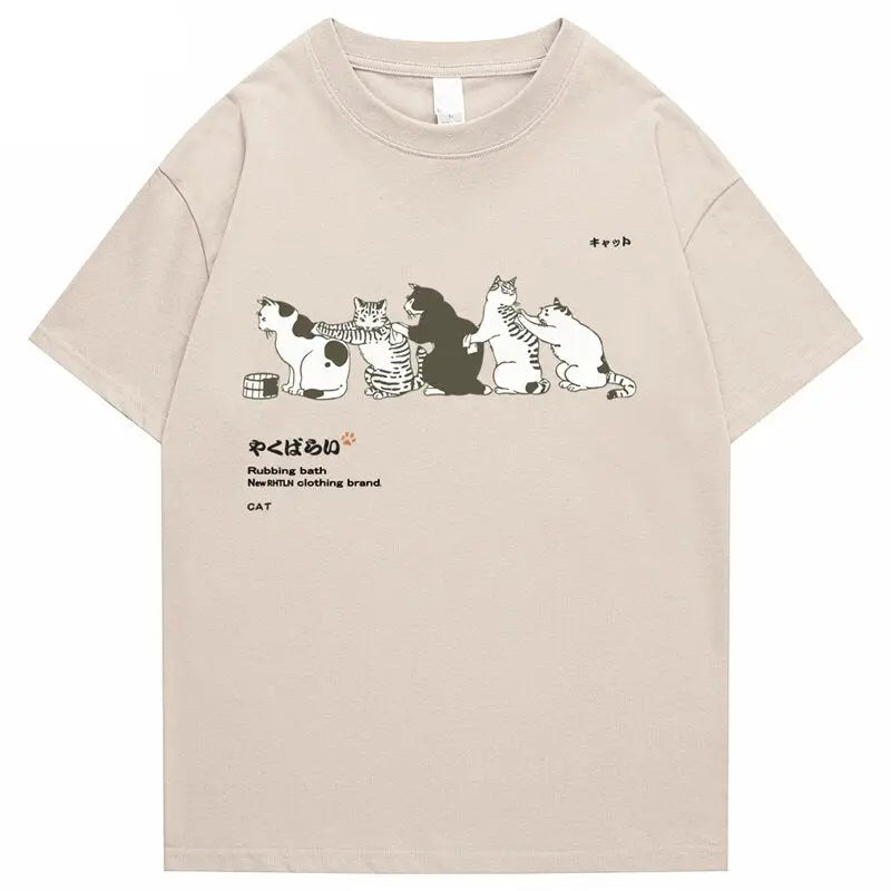 Cats hold a special place in Japanese culture, symbolizing good fortune and joy. The 'Funny Cats Rubbing T-Shirt' not only reflects this cultural appreciation but also brings a playful design that resonates with cat lovers everywhere. Wearing this t-shirt showcases your affection for these charming animals.