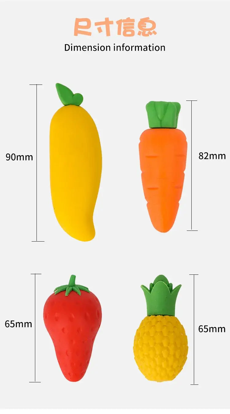 Crafted from high-quality materials, these erasers are designed to last and perform well. Each fruit shape, including mango, strawberry, carrot, and pineapple, adds charm to your stationery collection. Brighten your desk and make erasing fun—add these cute erasers to your cart today!