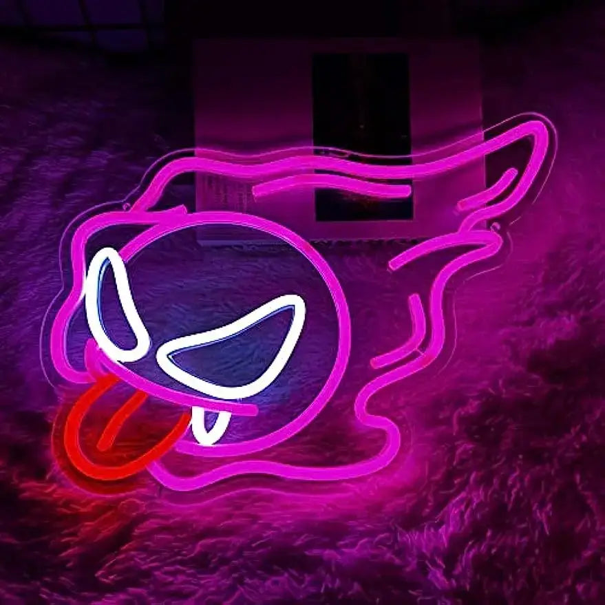 The Gastly Smirk Purple Neon Sign brings a piece of Japanese pop culture into your home. Inspired by the beloved Pokémon character, Gastly, known for its playful nature, this sign not only brightens your space but also adds charm and nostalgia, making it a favorite among anime enthusiasts.
