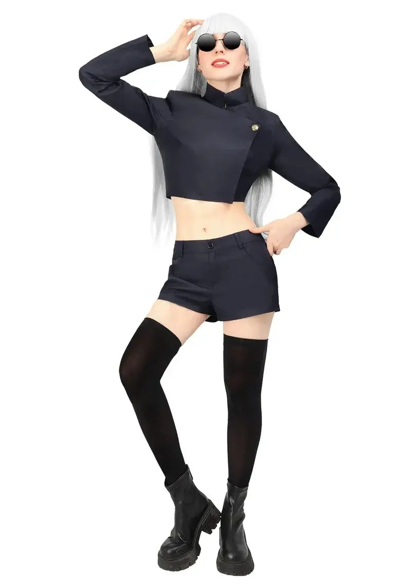 Designed with a sleek crop top and stylish shorts, this costume is made from high-quality, breathable fabric. It comes in sizes XS to XL, ensuring a great fit for everyone. Get ready to elevate your cosplay experience and make a memorable impression!