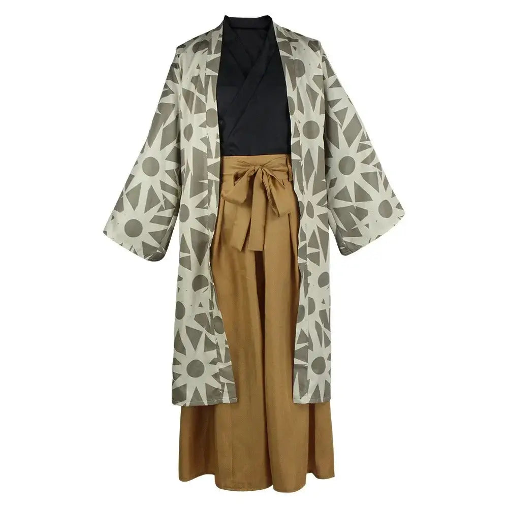 This costume features a stylish geometric-patterned kimono paired with a sleek black inner robe and comfortable tan hakama pants. Made from breathable materials, it ensures comfort during conventions and cosplay events. Available in sizes XS to 3XL, itās perfect for every fan. Get yours now!