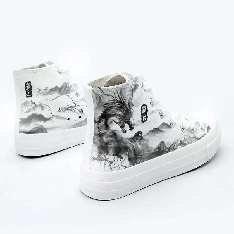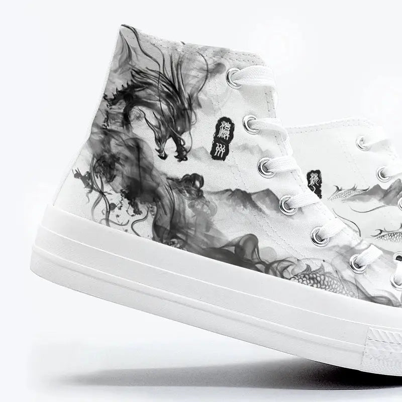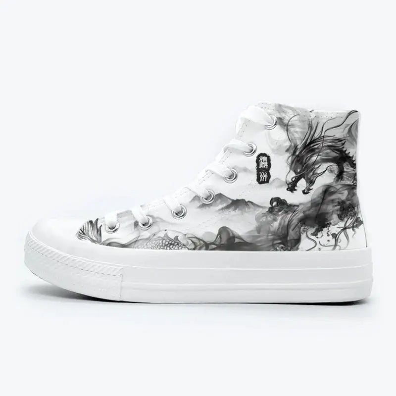 The Japanese dragon, known as 'Ryū', symbolizes strength and good fortune in Japanese culture. This design reflects the deep-rooted appreciation for these qualities, allowing wearers to express their admiration for Japanese mythology through fashion. These shoes are perfect for anime enthusiasts looking to embrace their culture.