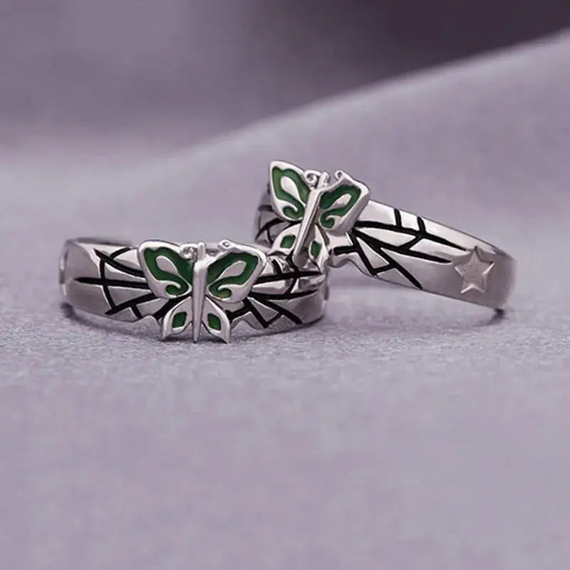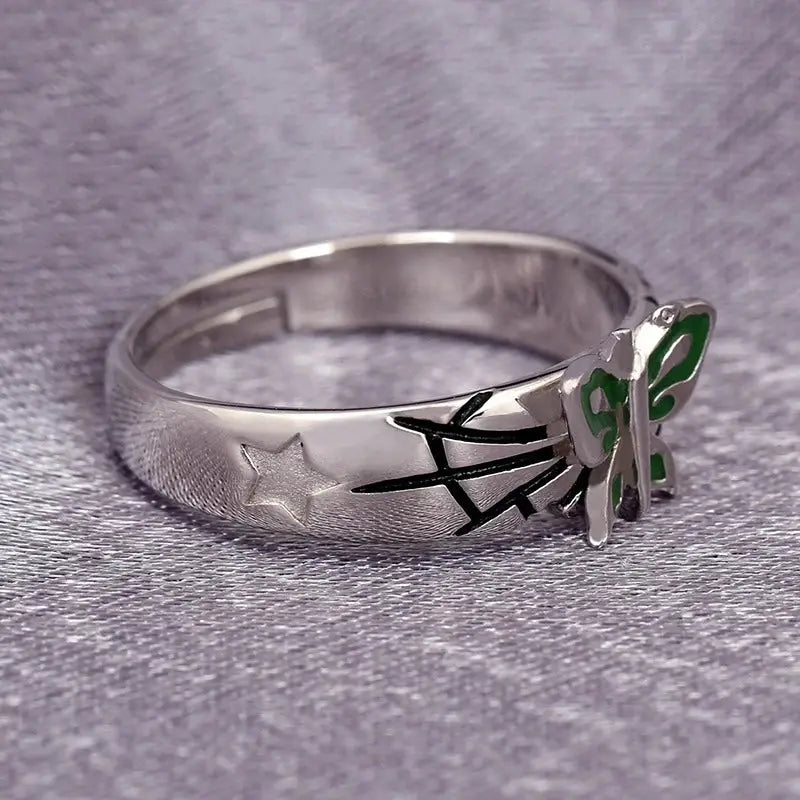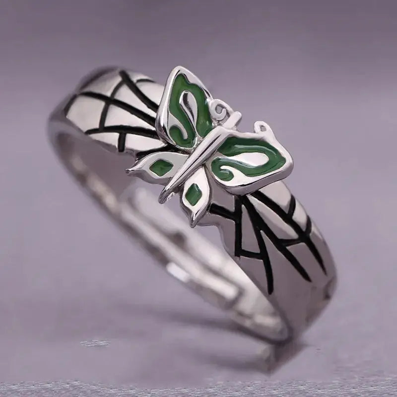 Crafted from durable alloy, this ring features an adjustable design for various finger sizes. The intricate green butterfly detail adds a pop of color, making it a standout piece. Perfect for daily wear, this ring is a must-have for anime enthusiasts. Order yours today!