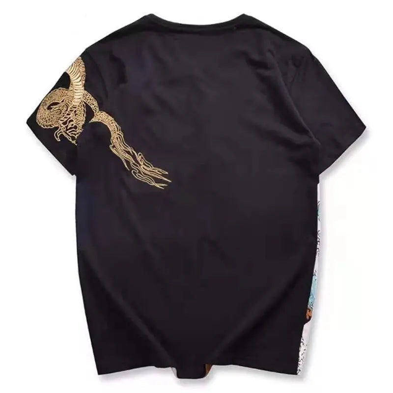 Kanagawa Wave Dragon Embroidery T-Shirt