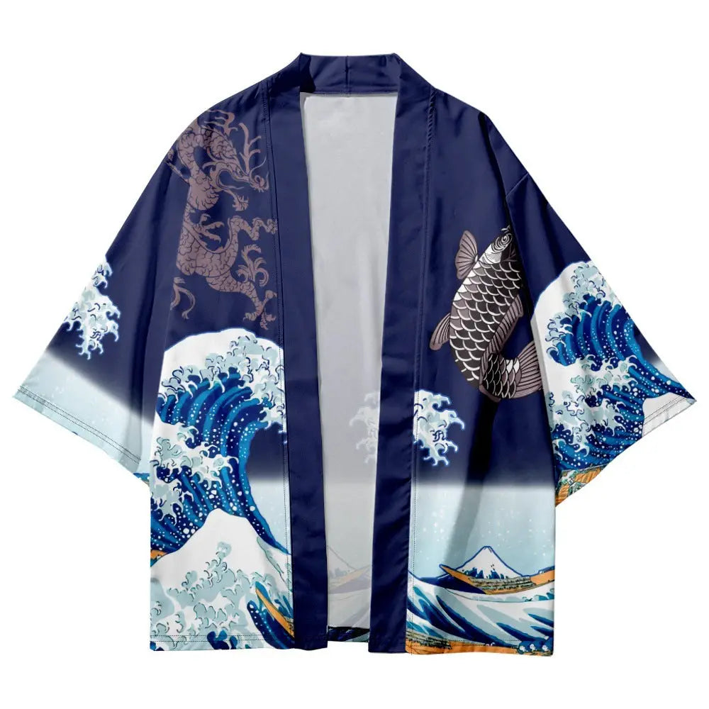 The Kanagawa Wave Navy Haori is inspired by Hokusai's iconic artwork, 'The Great Wave off Kanagawa.' This piece not only reflects the beauty of traditional Japanese art but also symbolizes the country's deep connection to the sea and nature. Wearing this haori allows you to appreciate and celebrate Japan's rich cultural heritage.