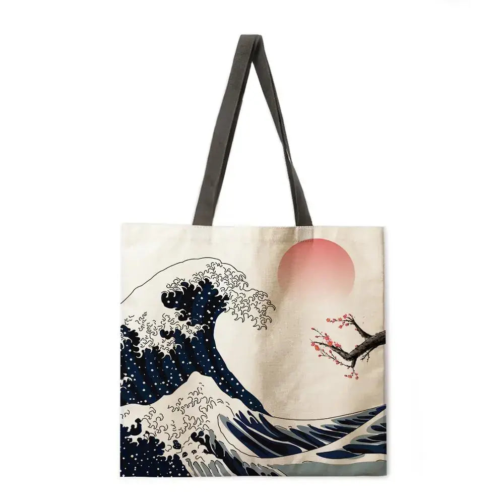 The Kanagawa Wave design originates from the iconic woodblock print by Hokusai, representing the blend of art and nature in Japanese culture. This artwork symbolizes resilience and beauty, making the tote not just a practical accessory, but a piece of history you can carry.