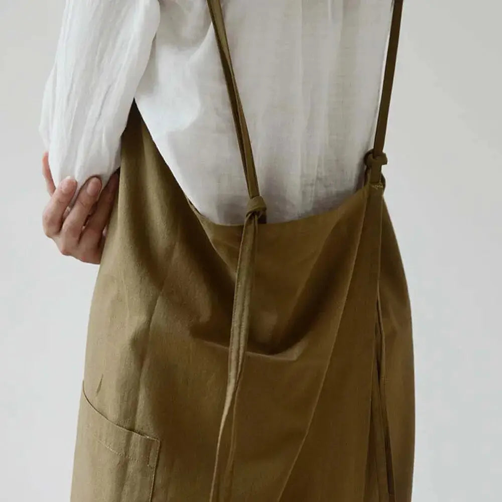 The Khaki Long Japanese Apron, or 'kappÅgi', reflects Japan's rich culinary heritage. Traditionally worn by homemakers and artisans, this apron combines functionality with elegance. Its minimalist design embodies the Japanese values of simplicity and practicality, making it a cherished piece in both kitchens and workshops.