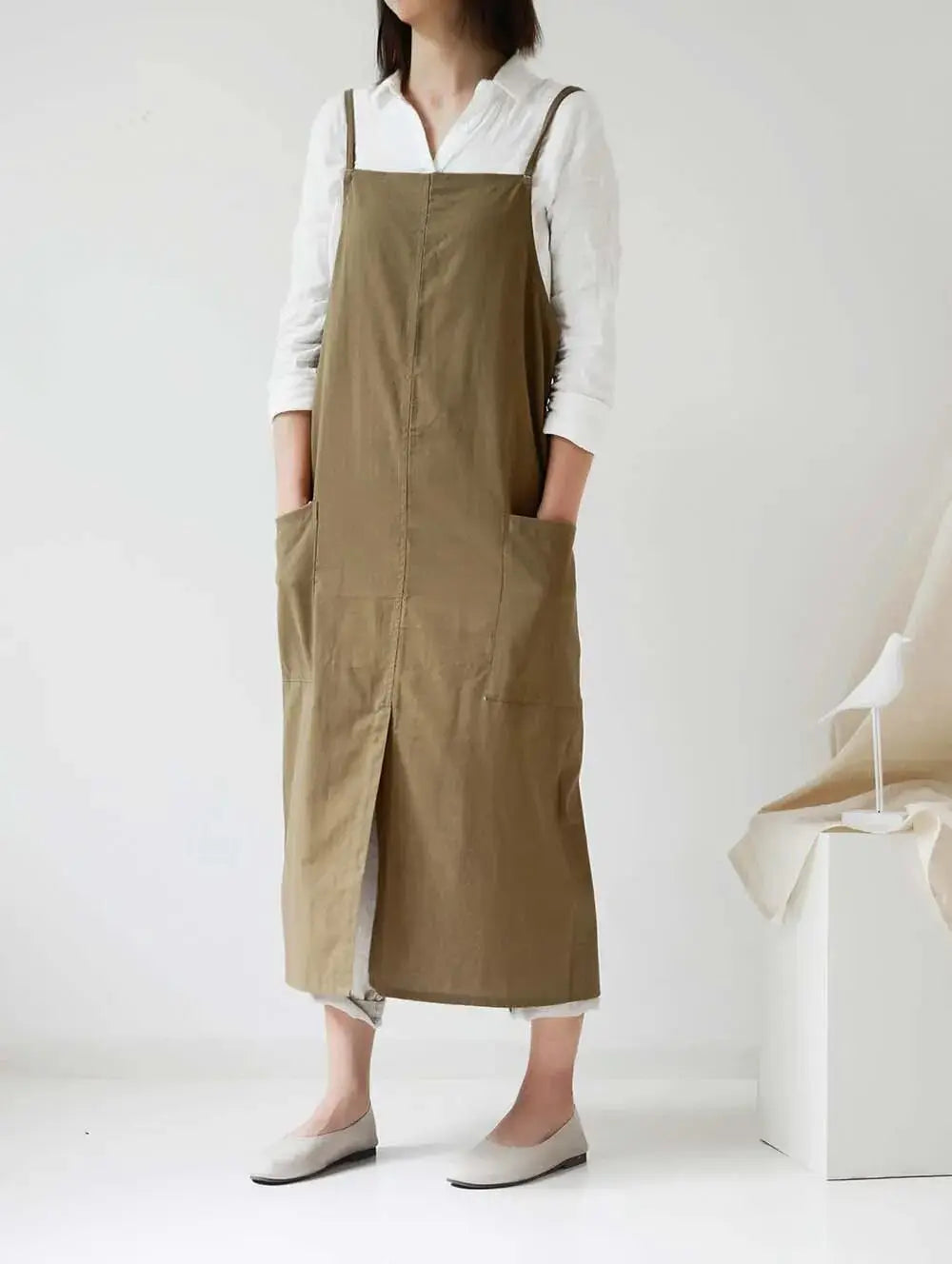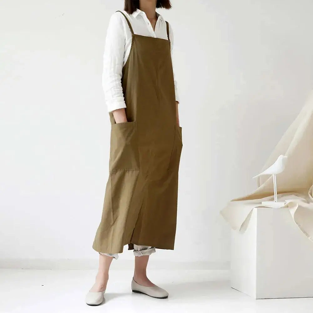 Crafted from 100% high-quality cotton, this apron is designed for comfort and durability. With a long, flowing fit and deep pockets, itās perfect for cooking or gardening. Its earthy khaki color suits both men and women. Order now to add this unique piece to your collection!