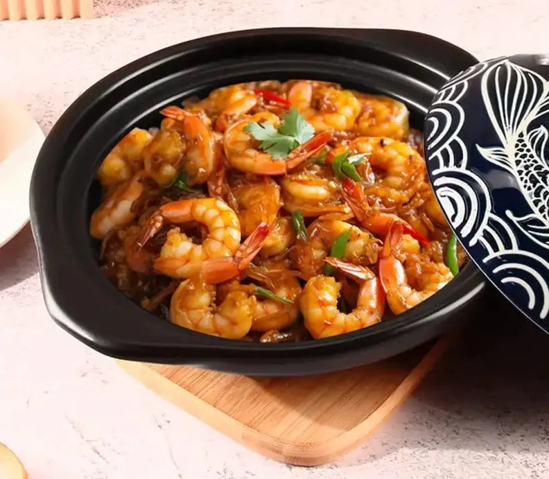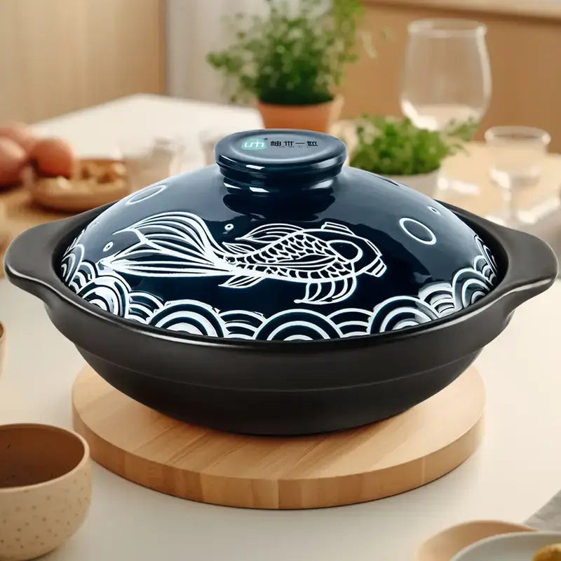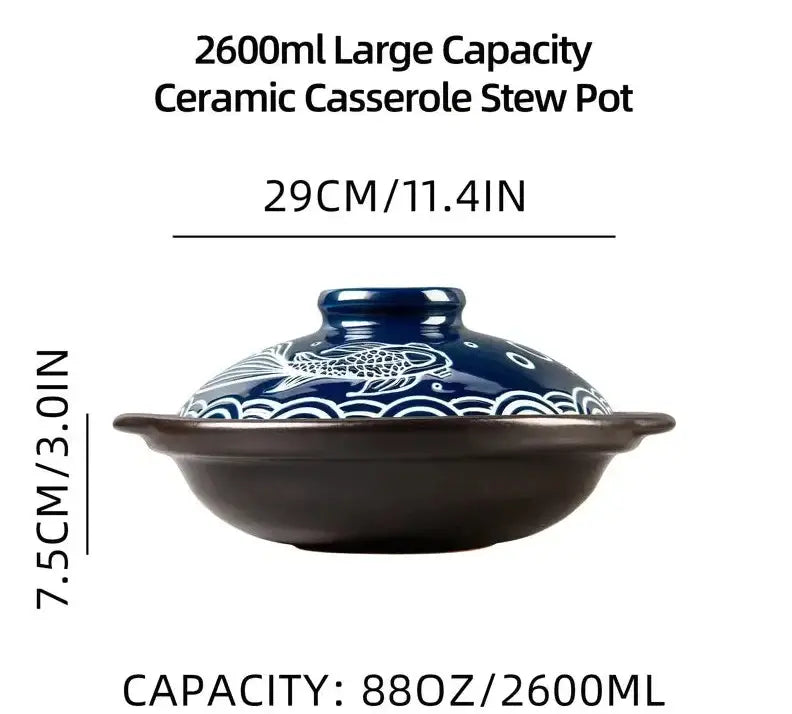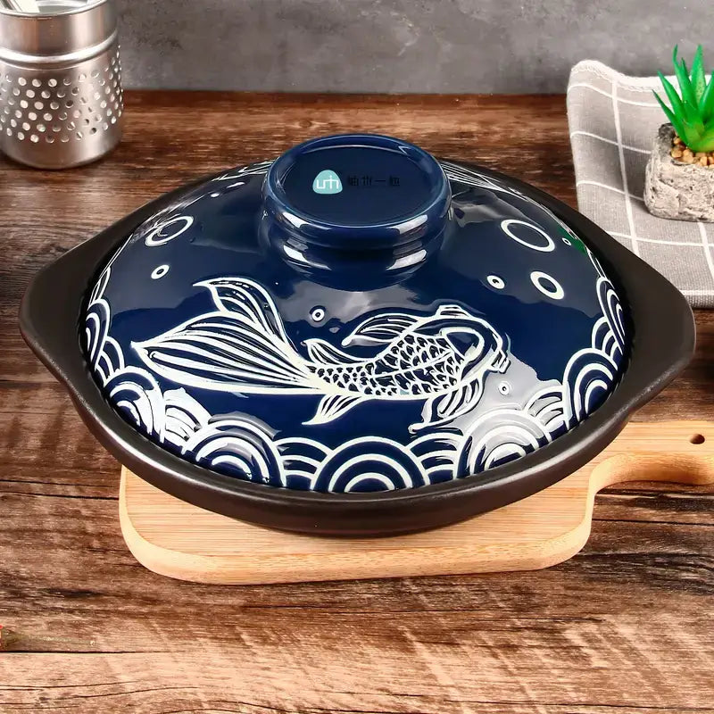 Crafted from high-quality ceramic, this pot features an eye-catching koi fish design, making it a beautiful addition to your kitchen. With a diameter of 8 inches and a height of 4 inches, it is perfect for family meals. Enhance your cooking experience and bring home this unique piece today!