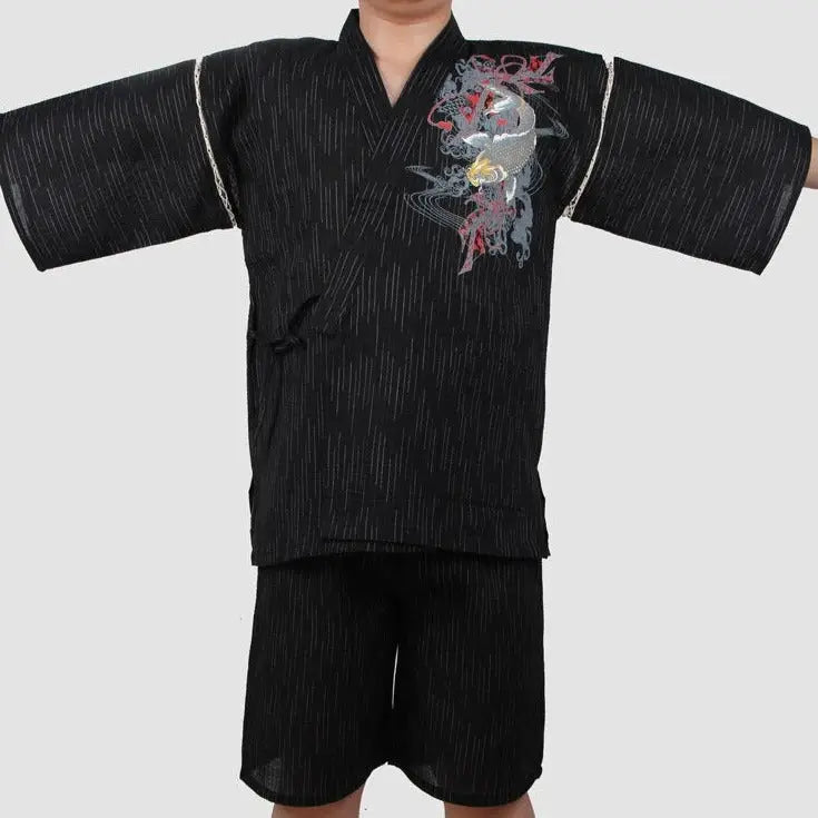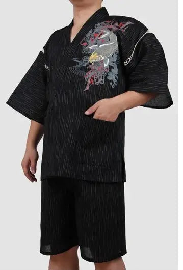 The Jinbei is not just clothing; it’s a piece of Japanese culture. Traditionally worn during summer festivals, it reflects values like gaman (perseverance) through its elegant design. The koi fish symbolizes strength and determination, making it more than just an outfit—it’s a celebration of heritage.