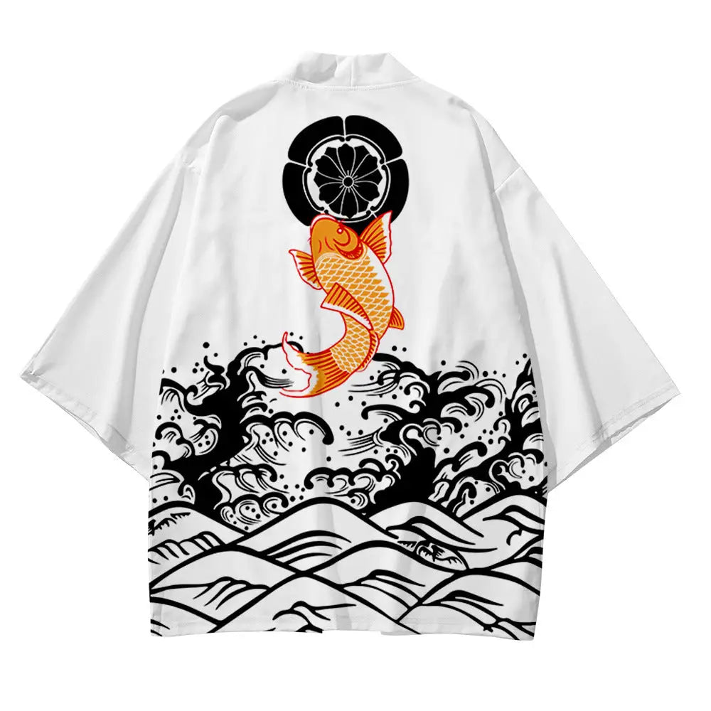 The Haori is not just clothing; it's a piece of culture. Originating from the Edo period, this traditional Japanese garment represents elegance and history. The koi fish is deeply rooted in Japanese folklore, symbolizing perseverance and courage, making this Haori a meaningful addition to your wardrobe.