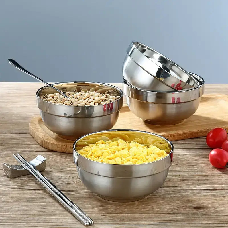 Crafted from high-quality stainless steel, these bowls are lightweight yet sturdy. Each bowl has a diameter of approximately 6 inches, making them perfect for individual servings. Their sleek design is easy to clean and store. Elevate your dining experience with this stylish set today!
