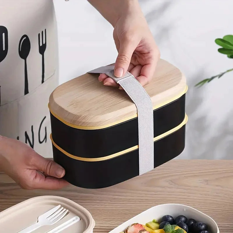 This Modern Black 2T Bento Box features a sleek black exterior with natural wood accents. Measuring approximately 7.5 x 4.5 x 3 inches, it’s both compact and spacious. Perfect for work, school, or picnics, enjoy stylish and practical meals everywhere. Order now to enhance your lunch experience!